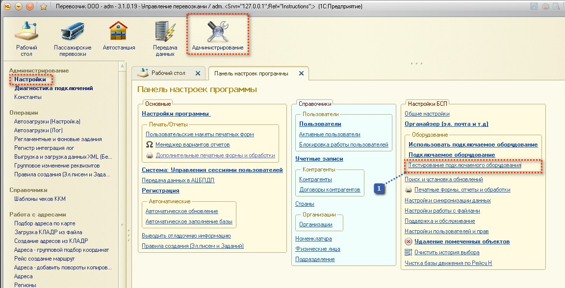 1) Выбираем пункт "Тестирование подключаемого оборудования"