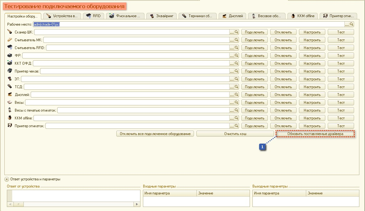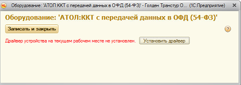 2) Вводим настройки кассового оборудования (настройки кассового оборудования берём из уставновленного на компьютер драйвера).