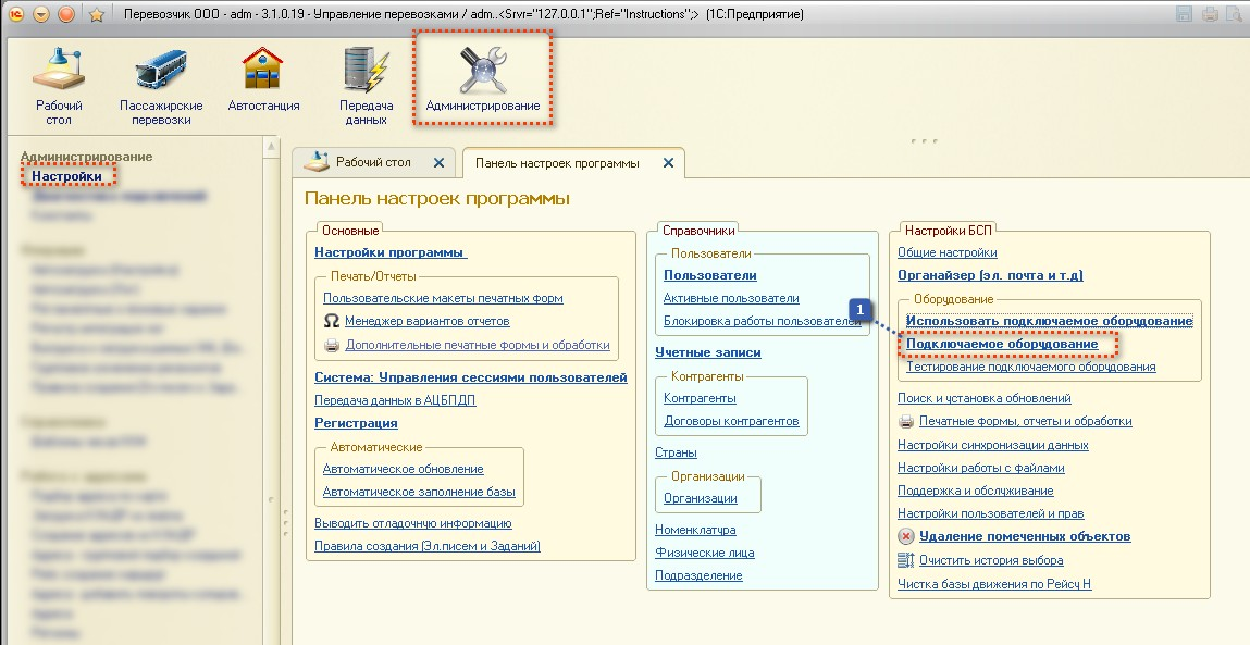 1) В открывшемся окне выбираем из списка "Тип оборудования".