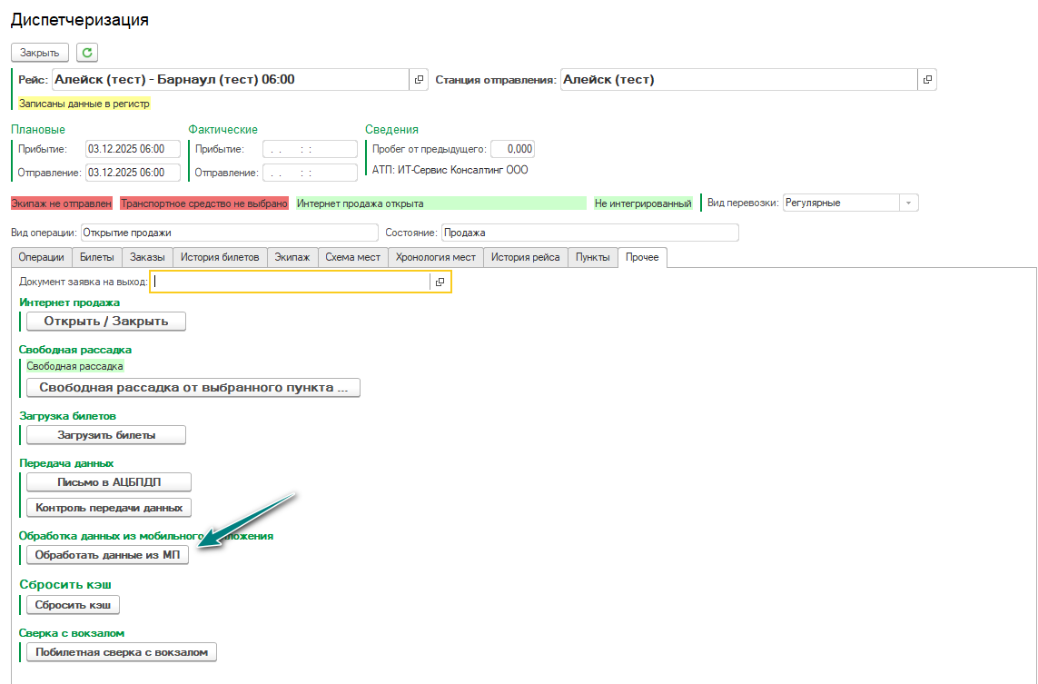 Перевозчик не имеет цели освобождать места или бывают случаи, когда пассажиры догоняют автобус. В таком случае неявки поступают в систему, а обработка таких билетов проходит в ручном режиме через раздел "Диспетчеризация". Пассажир, которому проставлена неявка будет храниться в списке пассажиров по пункту до конца поездки.