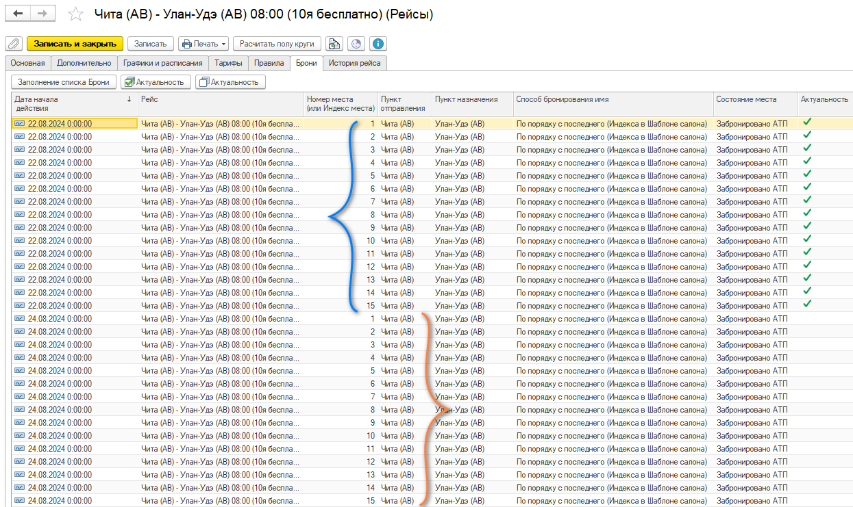 Сразу после этого Вы можете создать новый список броней на выбранную дату, после которого также нужно обновить рейс-расписания.