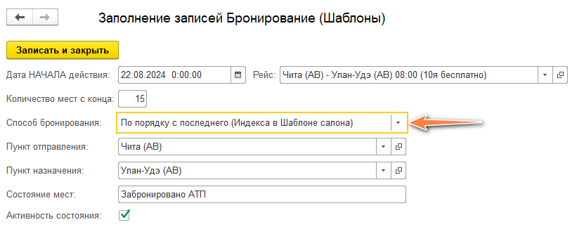 По порядку с последнего - укажите количество мест на которые будут созданы брони. Нумерация идет от последнего места в салоне, согласно шаблону салона ТС.