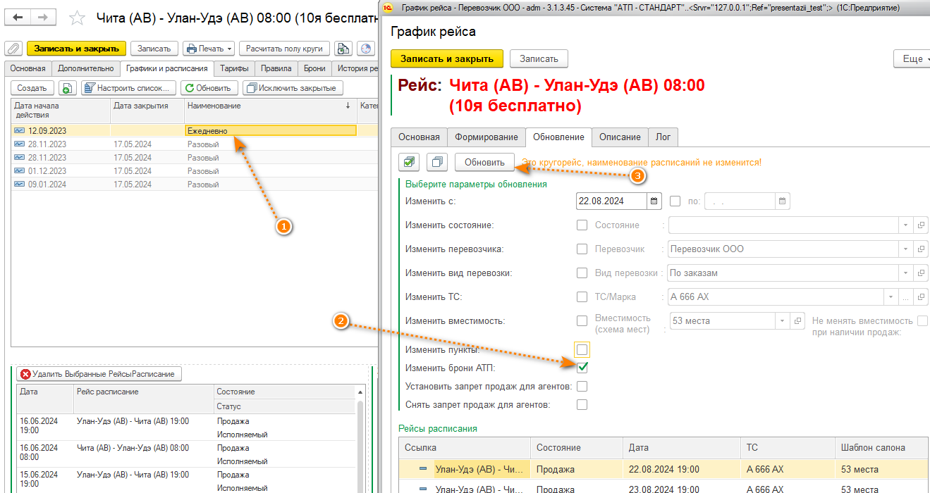 В Рейсе вкладка Графики расписания – заходим в нужный (нужные) двойным кликом – вкладка "Обновление".